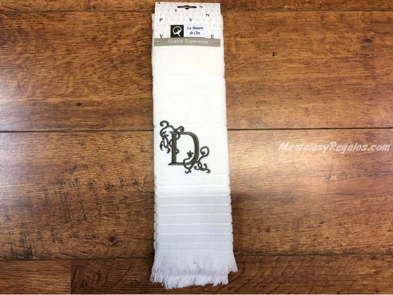 Paño de Cocina de algodón bordado con la letra D (forma rectangular de 50 x 70 cm). Tejido de alta calidad muy suave por la cara principal y especial para secado por la parte trasera.