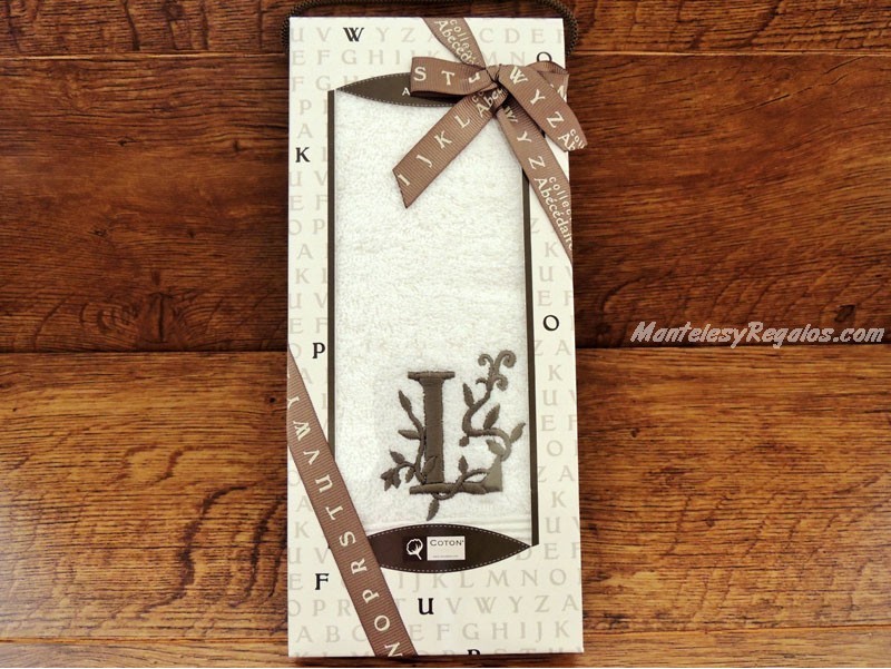 Toalla de invitados 100 % Algodón con bordado de inicial letra "L". Toalla en color crema y medidas de 30 x 50 cm. Máxima calidad en el bordado.