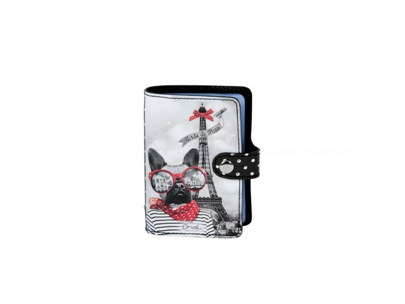 Práctico Tarjetero decorado con cierre metálico modelo Mordu de París.