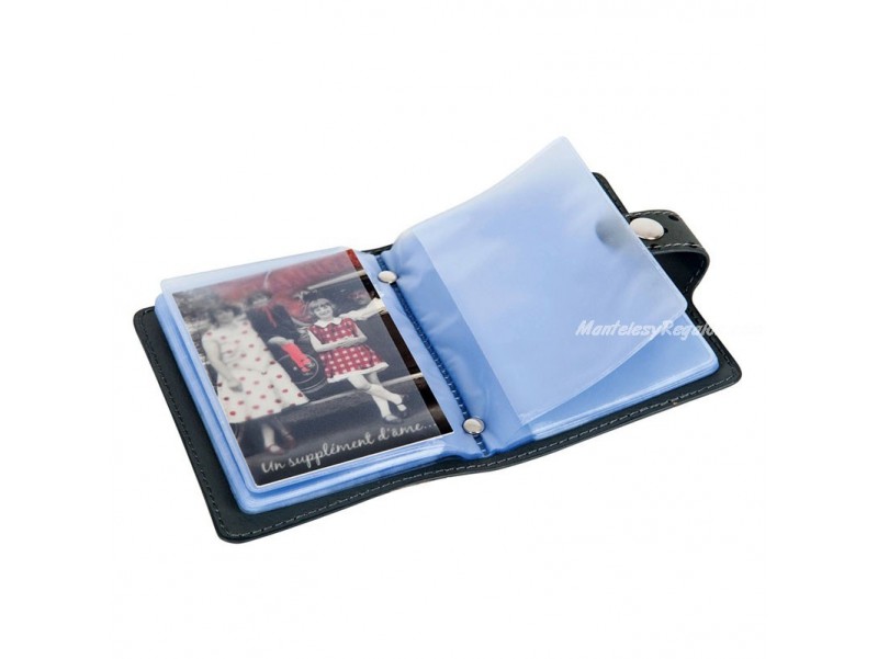 Con compartimentos transparentes de plástico para que guardes todas tus tarjetas en un mismo lugar.