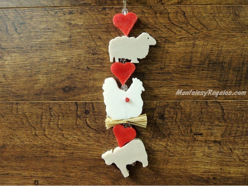 Bonita y decorativa Guirnalda de jabones perfumados modelo Gallina lazo (40 cm. de altura). El jabón contiene perfume de polvo de arroz, de canela y de uvas.