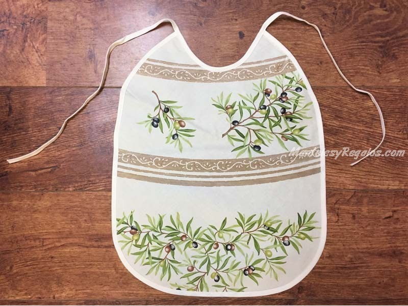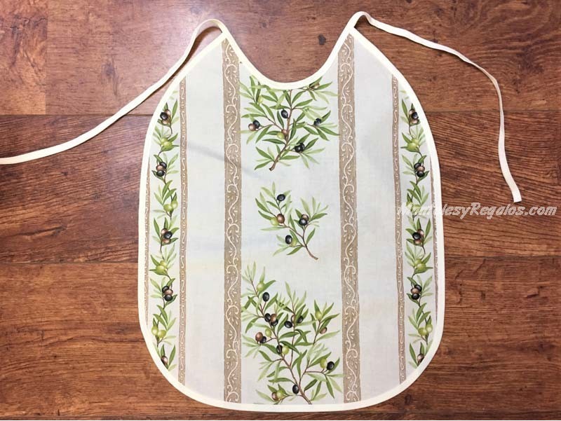 Bonito Babero para adultos confeccionado 100 % en algodón plastificado modelo Clos des Oliviers en color crema.