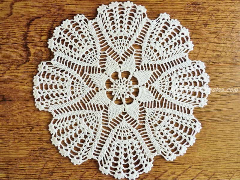 Bonito Tapete bordado con forma redonda en color blanco. Ideal para decorar el centro de una mesa o cómoda.